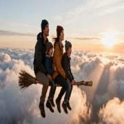 梦见自己骑飞天扫帚带家人看云海,是一个极具积极意义的梦,融合了魔法、责任与超越的美好意象。
