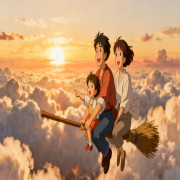 骑飞天扫帚象征着你对生活拥有了一种超凡的掌控力与自由感,仿佛掌握了某种“魔法”,能自信地摆脱限制,驾驭局面。带家人同行是梦的核心,表明你的奋斗和成就绝非只为个人,而是强烈渴望与所爱之人分享成功的视野与喜悦,承担着带领他们共同前进的责任感。云海代表宏伟的愿景、精神上的升华与宁静的成就,说明你希望带给家庭的是一种开阔、美好且超越平凡的生活体验。