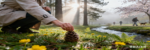 核心寓意:收集灵感与机遇,积累微小的确幸。自然与收获:“公园”代表放松和自然的环境,“松果”是树木的结晶,象征着来自生活或大自然的小礼物、灵感或机遇。这个动作预示你正在平凡生活中留意并收集那些有价值的小事物,可能是一个新想法、一次小确幸或潜在的资源。